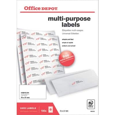 Office Depot 1665339 Multipurpose Labels 70 x 37 mm White 37 x 70 mm 100 Sheets of 24 Labels ...